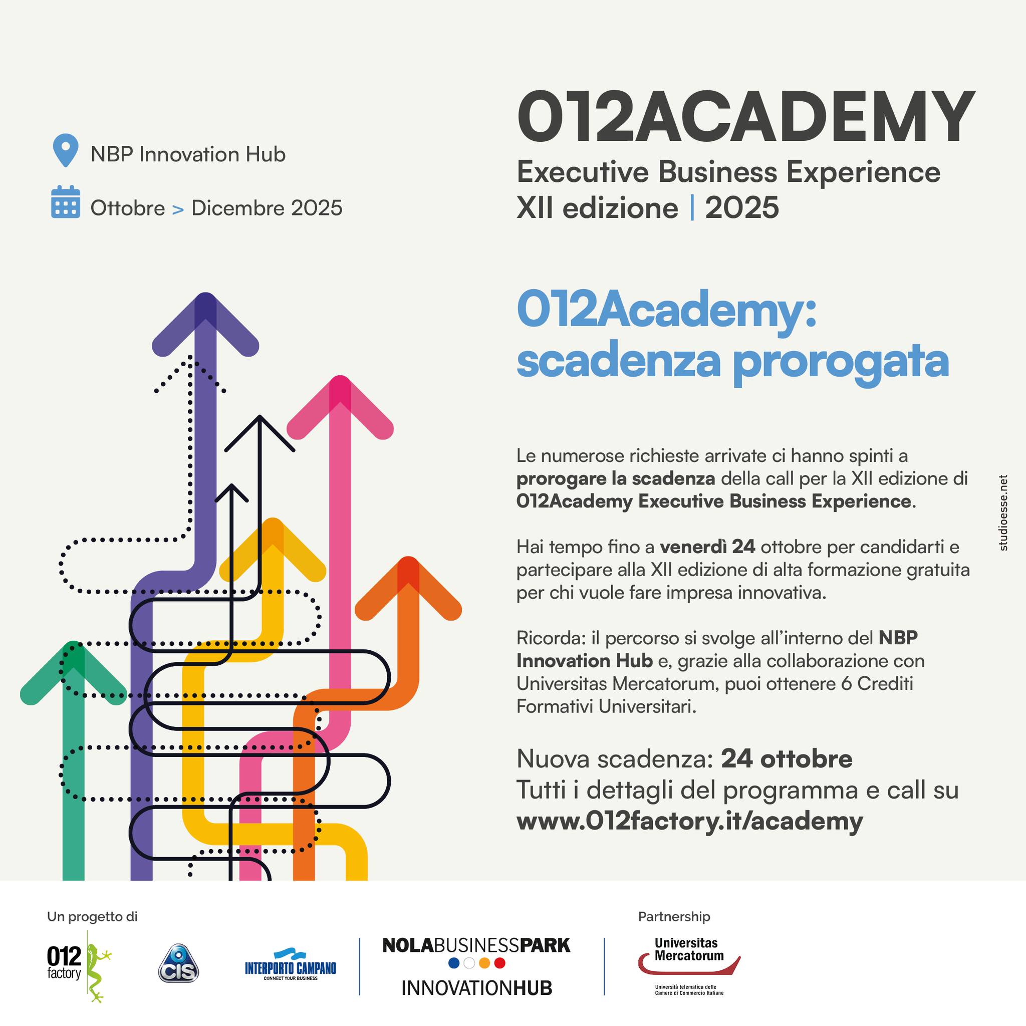 “012 Academy Executive Business Experience” è un percorso di alta formazione, organizzato da NBP Innovation Hub, dedicato alle nuove generazioni di imprenditori e alle prime linee aziendali, interessate ad approfondire le nuove tecnologie per far crescere la propria azienda, e ad acquisire ulteriori competenze da utilizzare nel proprio business o per dare vita a una nuova impresa.